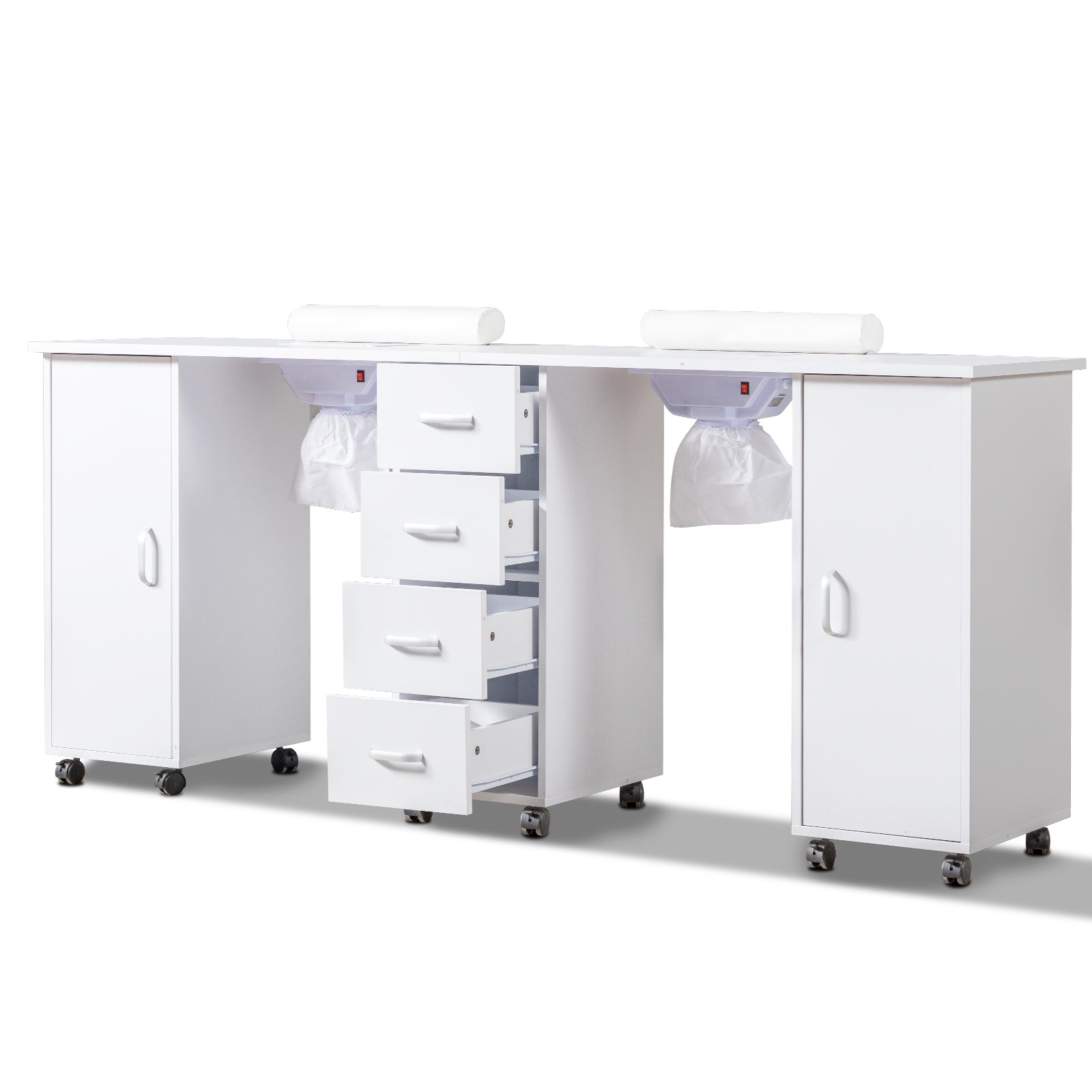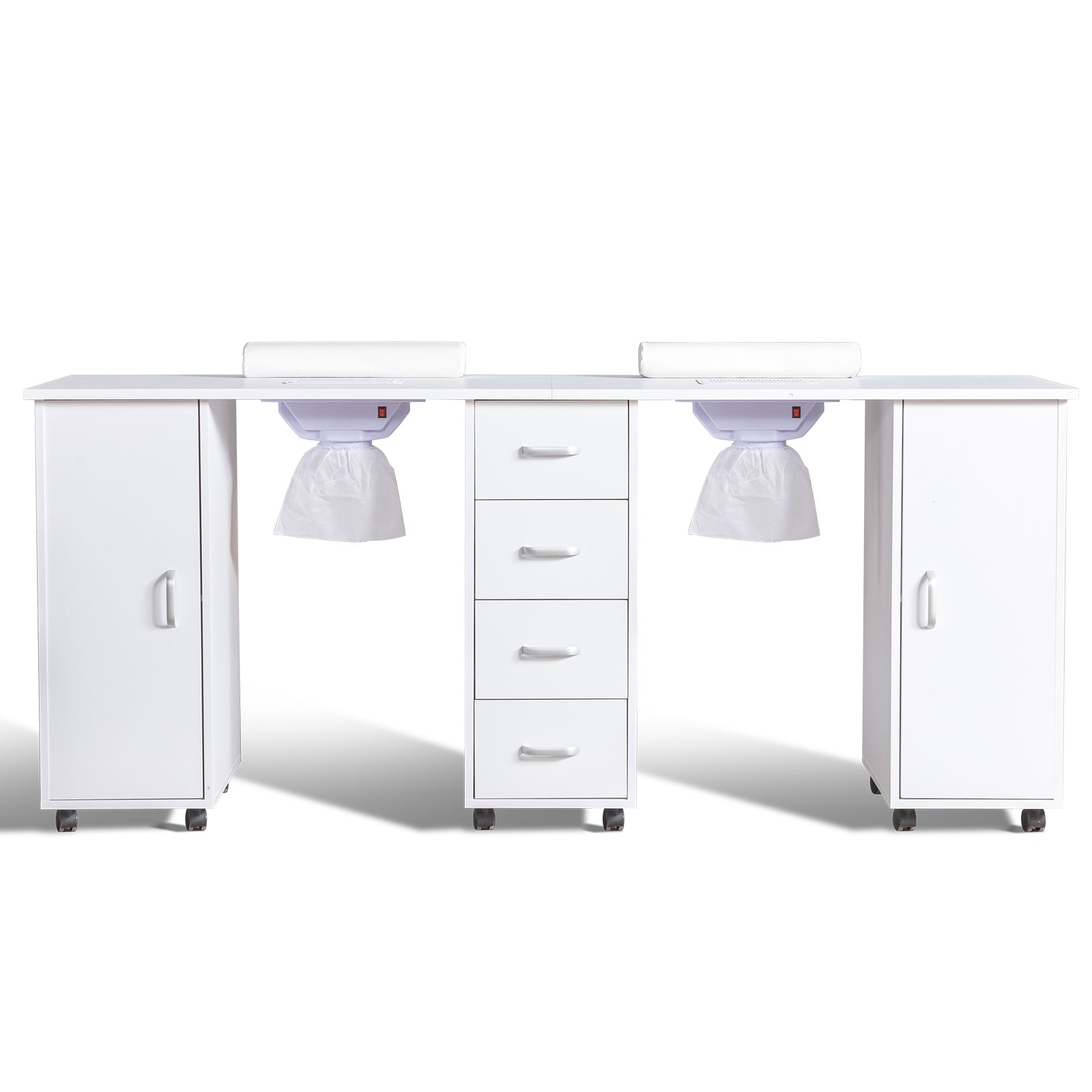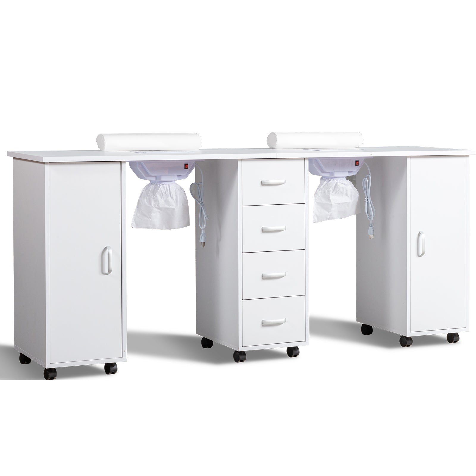 Double Manicure Table with Electric Dust Collector, Movable Nail Table Station with Wrist Rest for Nail Tech Beauty Spa Salon, White
