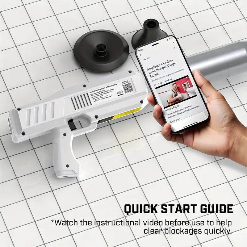 - [Easy to Clean] Still scrubbing grimy residue trapped in plunger crevices after using old-school toilet plunger? The AMPFORCE electric plunger for toilet skips the nasty cleanup—just rinse the plunger head under tap water, slide it into the free storage pouch, and boom! Spotless hygiene in 10 seconds flat!