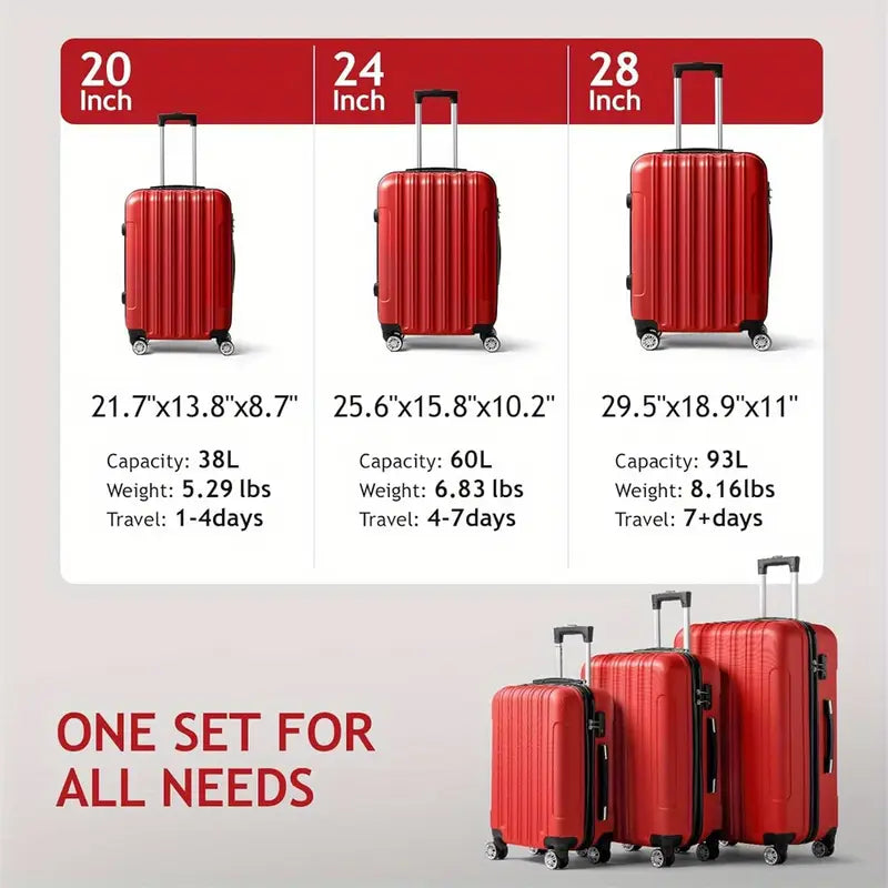 Specifications: 1. Material: ABS 2. Color: Dark Gray 3. Weight: 317.47oz / 9000g 4. Size Of Type 20": (8.66 x 13.78 x 21.65)" / (22 x 35 x 55)cm(L x W x H), 5.29 lbs / 2.4kg 24": (10.24 x 15.75 x 25.59)" / (26 x 40 x 65)cm(L x W x H), 6.83 lbs / 3.1kg 28": (11.02 x 18.9 x 29.53)" / (28 x 48 x 75)cm(L x W x H), 8.16 lbs / 3.7kg