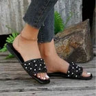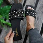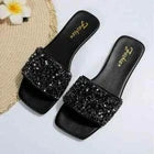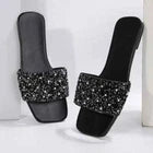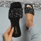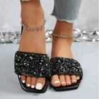Women Rhinestone Sandals Glitter Strappy Squin Shoes Square Toe Slider Flat